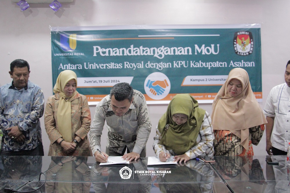 Pada Jumat, 19 Juli 2024, Universitas Royal dan KPU Kabupaten Asahan resmi menandatangani MoU yang bertujuan untuk memperkuat kolaborasi di bidang pendidikan, pengembangan sumber daya manusia, dan demokrasi. Penandatanganan ini dilakukan di Kampus 2 Universitas Royal.