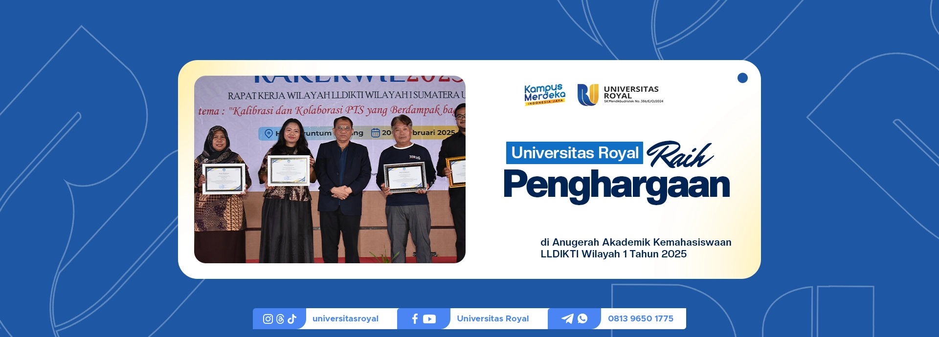 Universitas Royal Raih Penghargaan di Anugerah Akademik Kemahasiswaan LLDIKTI Wilayah 1 Tahun 2025
